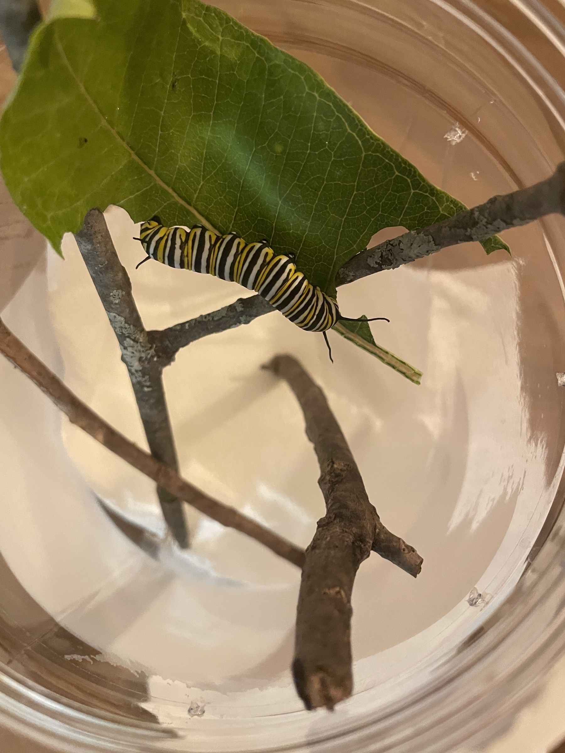 My daughter found two monarch caterpillars on our milkweed plants which has kicked off an amazing journey.